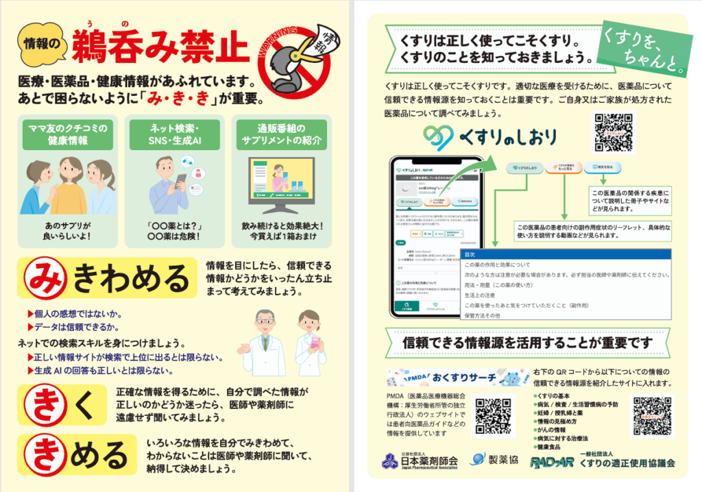 医療・健康情報を見極めるコツをまとめた、一般の方向けの啓発資材「情報の鵜呑み禁止!」を制作しました。