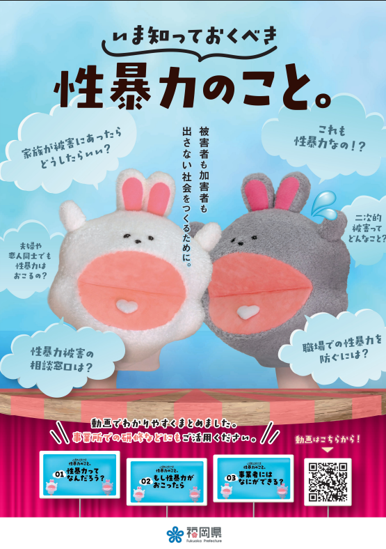 福岡県では、性暴力根絶条例に基づき、県民全ての力で性暴力を根絶し、被害者も加害者も出さない社会、性暴力を許さず、被害者に寄り添う社会をつくるための様々な取組が進められています。